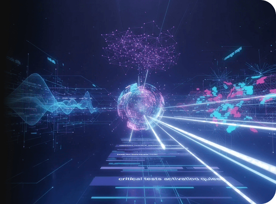 The change impact agent analyzes code diffs, dependency graphs, and coverage maps to recommend exactly which tests to run. Critical tests execute first, low-impact tests defer until resources allow. You catch issues faster without sacrificing coverage.