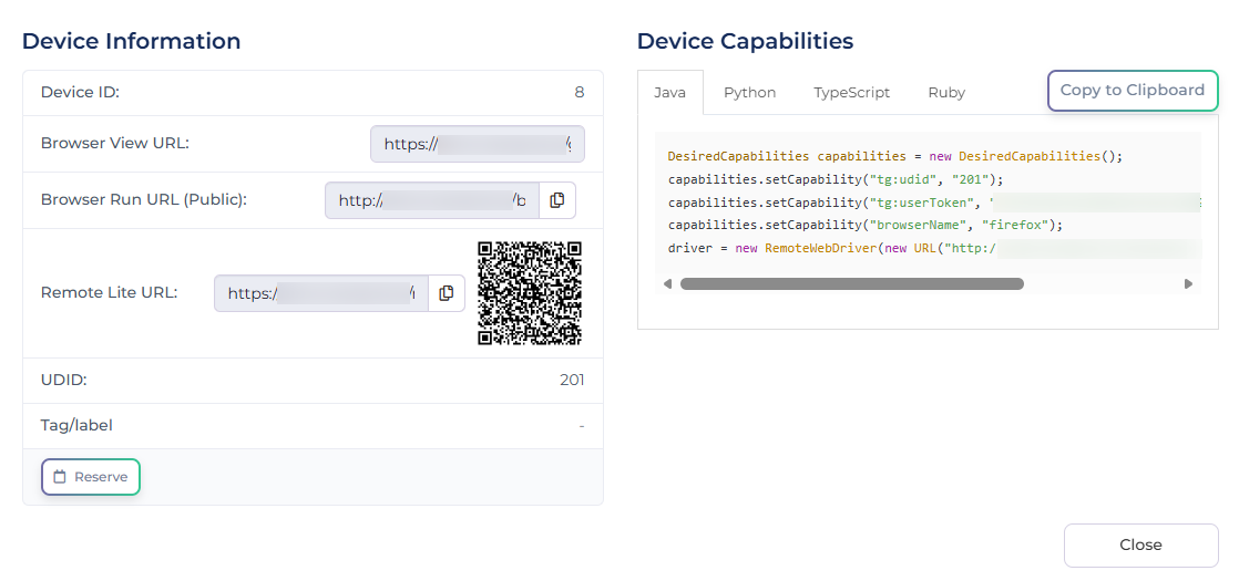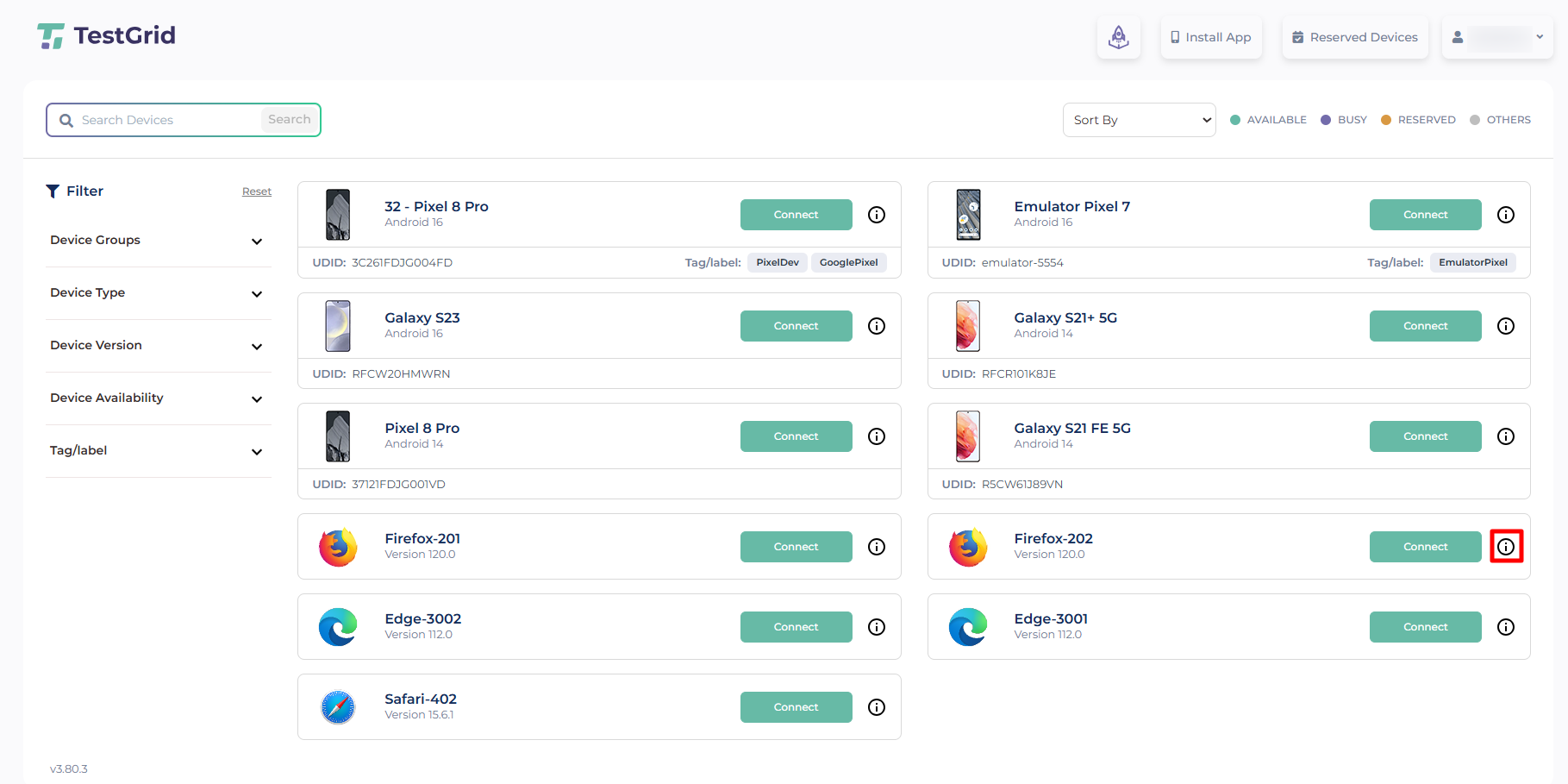 Step 1: To get the <TestGrid Browser Public URL> and <Browser UDID>, follow the steps below