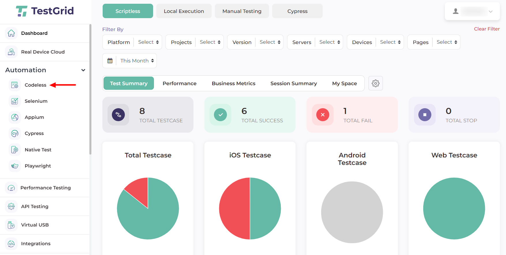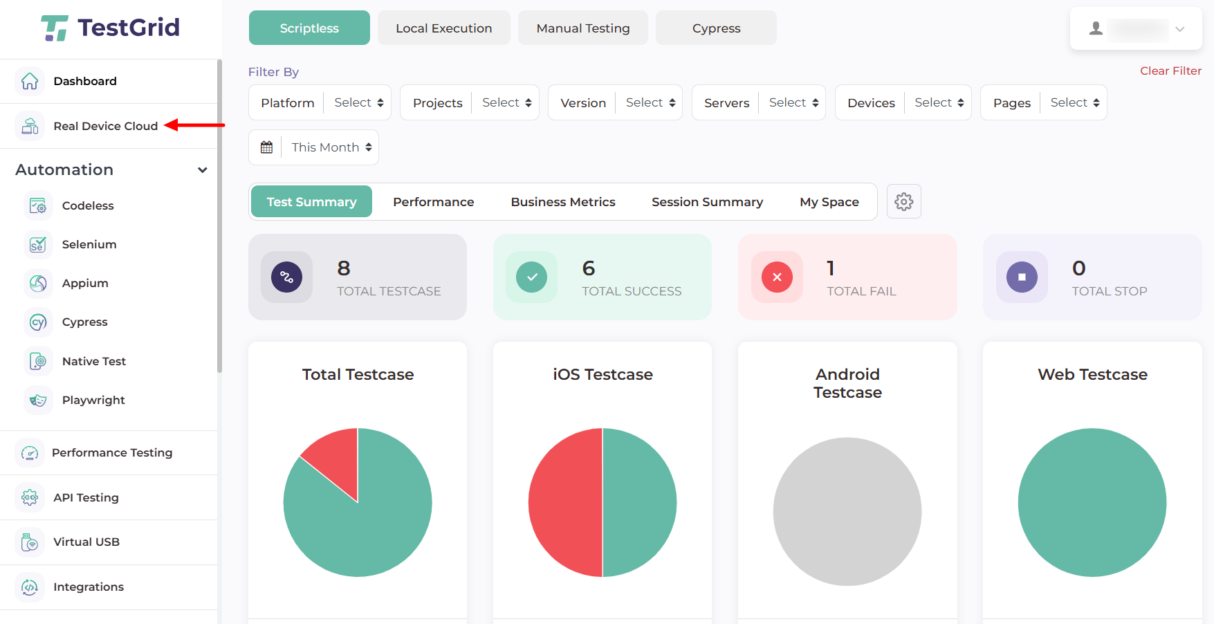 a. Log in with TestGrid credentials and go to the Devices Cloud option tab.
