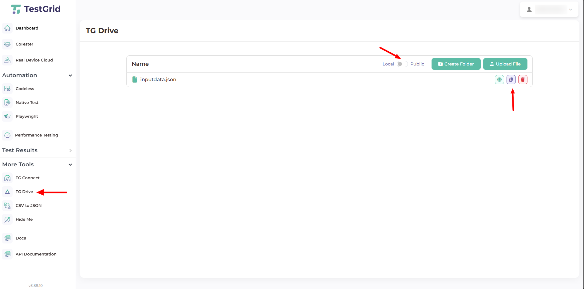 • Once the file was uploaded on TG Drive, you could switch the tab from public to local, and you would get the local link, which is used in your TC.