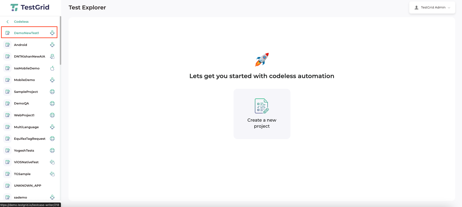 - Now the project will be visible along with the created test cases listed in the project.
