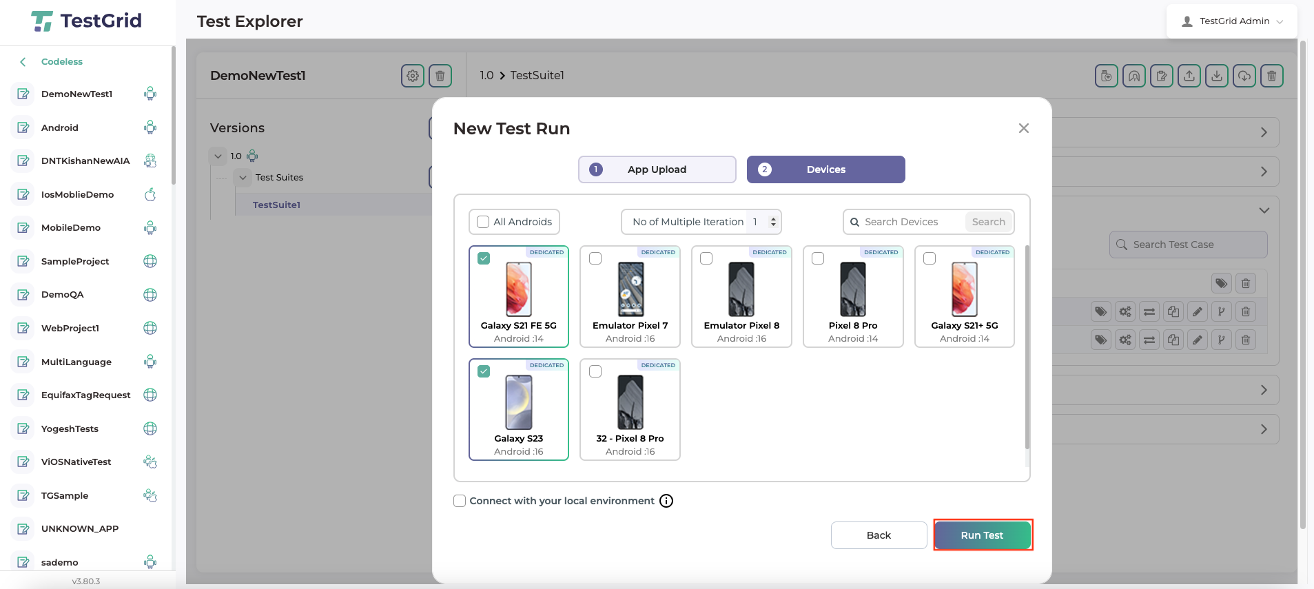 Step 5: Select multiple devices of your choice and click on “Run Test.”